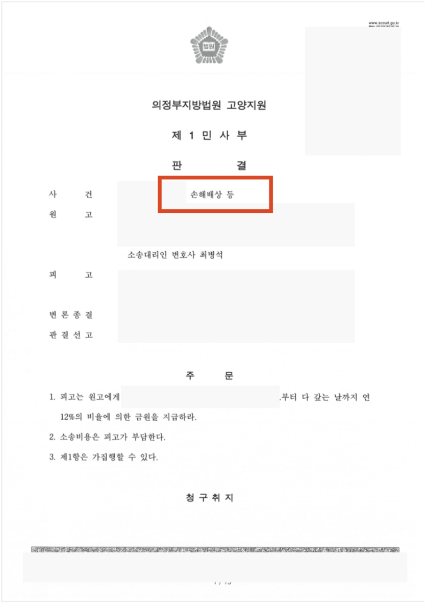재판부는 법무법인 우경이 제출한 증거와 법리적인 주장을 모두 받아들여, 원고의 청구가 전부 인용되는 판결을 내렸습니다.