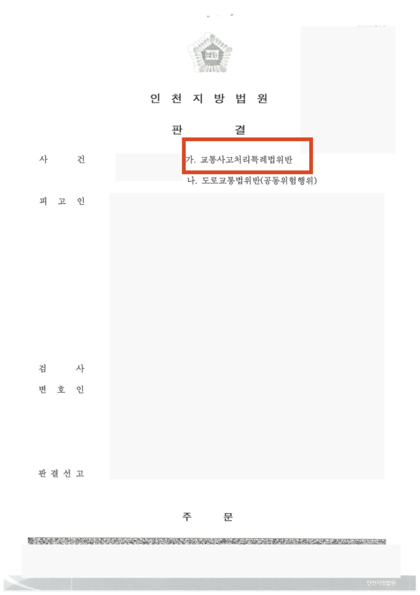 불법유턴 교통사고 집행유예 받은 사건 사례