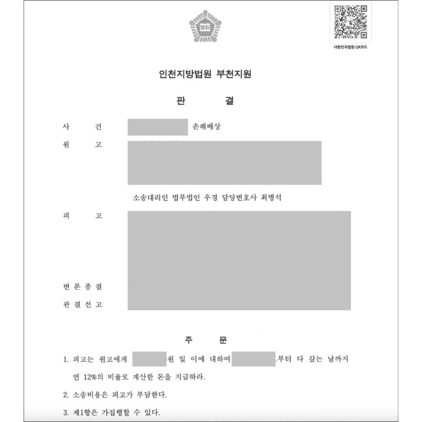 결국 법원은 피고에게 손해배상금 전액과 지연손해금(연 12%)의 지급을 명령하였으며, 원고의 청구를 모두 받아들였습니다.