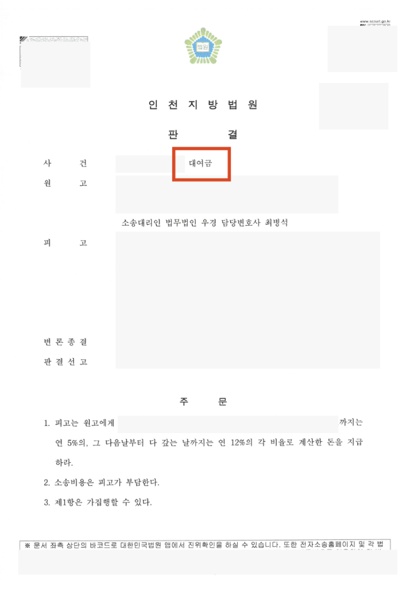 빌린돈이 아니라고 주장하는 대여금 사건 승소 사례