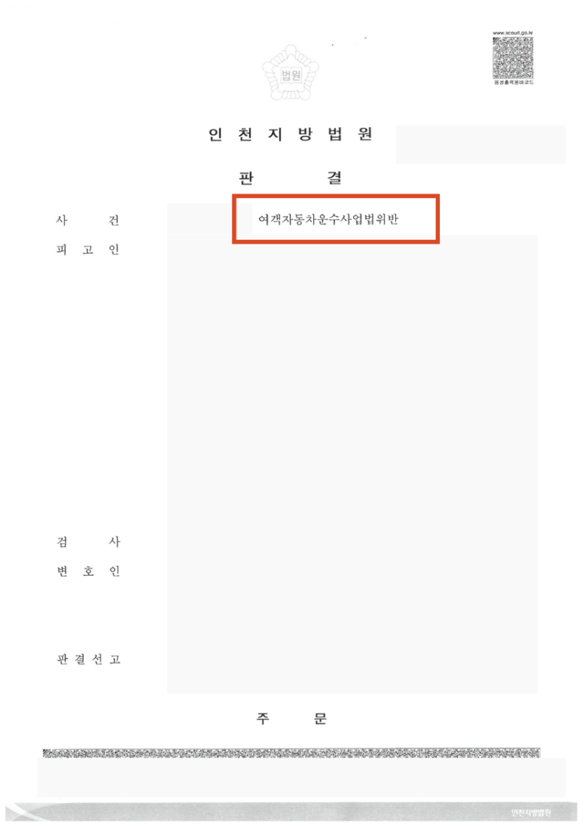 여객자동차 운수사업법 위반 가벼운 벌금형 받은 사례
