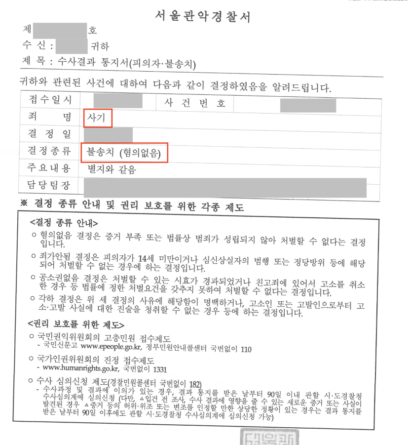 을 근거로 혐의없음(불송치) 결정을 내렸습니다.