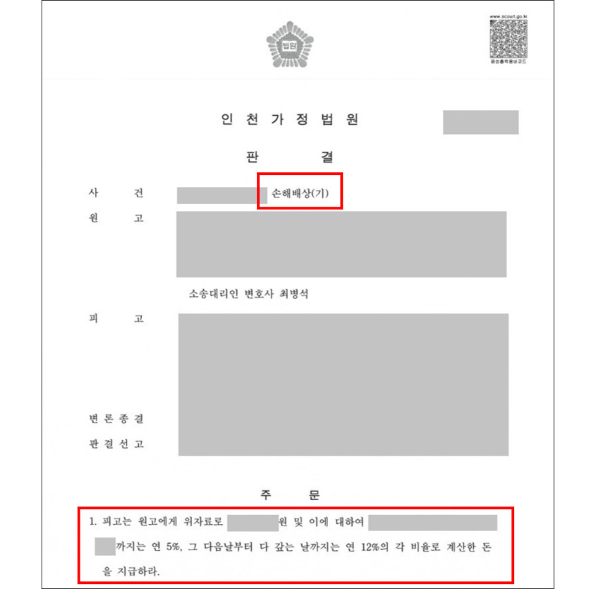 본 사건에서도 법원은 피고의 부정행위가 원고에게 정신적 고통을 유발했음을 인정하고, 피고가 원고에게 위자료 수천만 원과 지연손해금을 지급할 것을 명령하였습니다.
