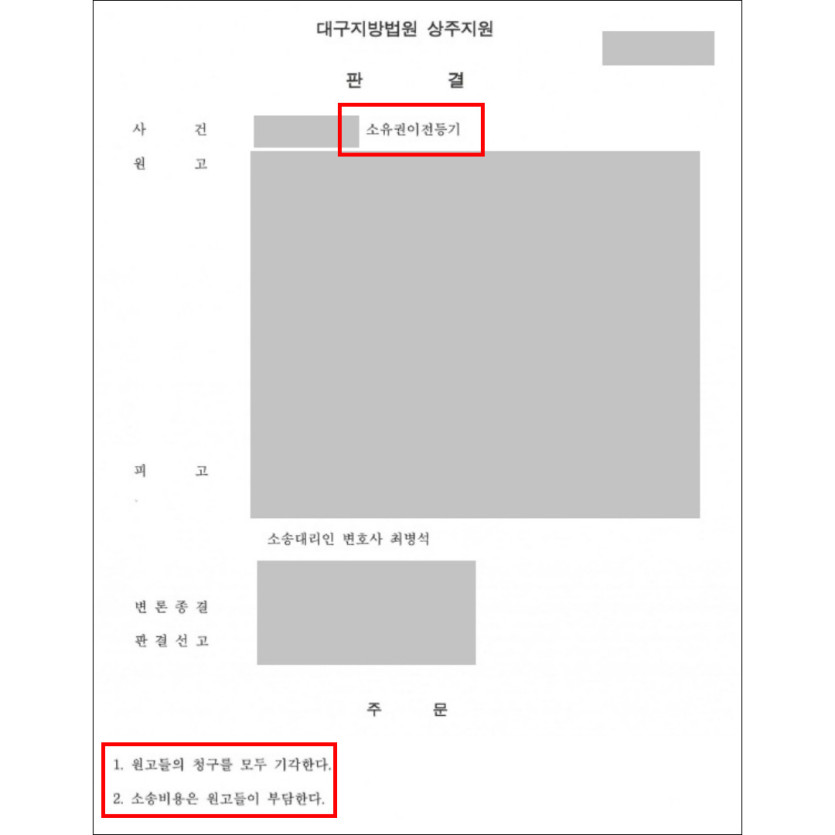 의뢰인은 돌아가신 조부로부터 부동산을 상속받은 손자였으며, 이 사건에서 원고들은 같은 조부의 자녀들, 즉 피고의 숙부 및 고모에 해당하는 인물들이었습니다.