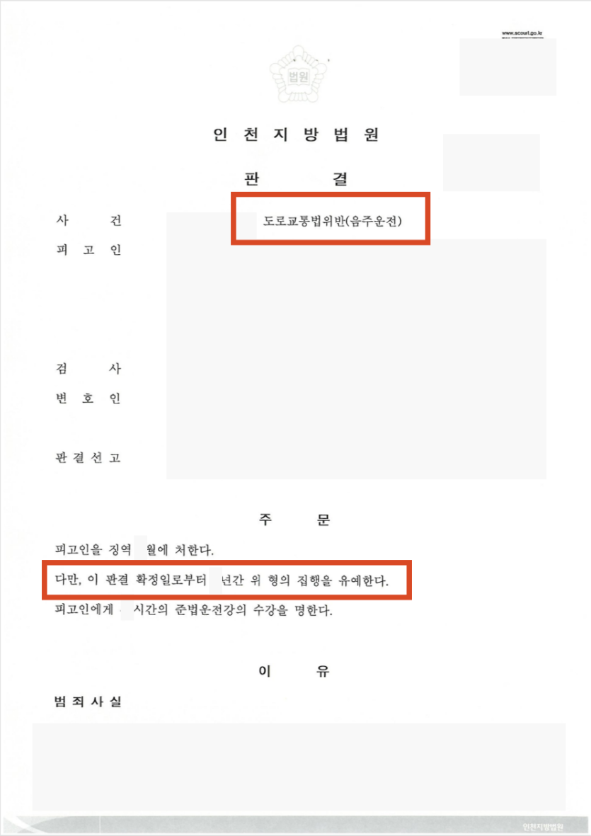 이에 실형 대신 일정 기간 동안 형의 집행을 유예하는 집행유예 판결을 받을 수 있었습니다.