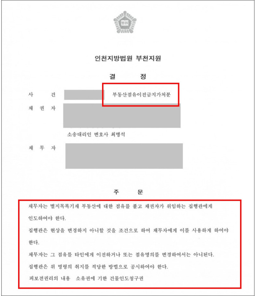 이에 법무법인 우경은 즉시 부동산점유이전금지가처분을 신청하였습니다.