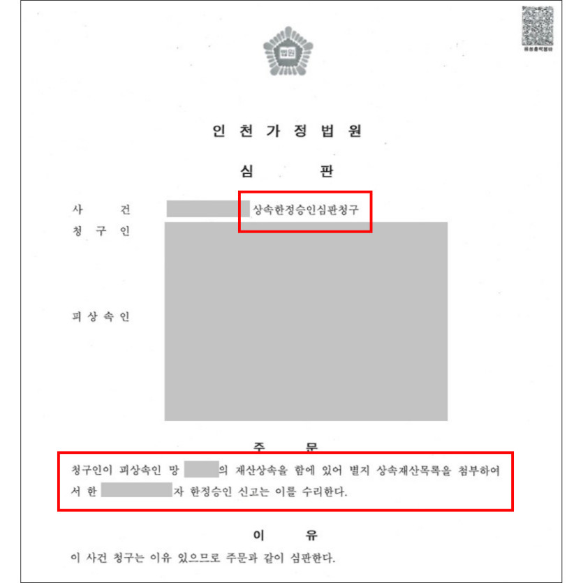 상속한정승인 심판청구 성공 사례