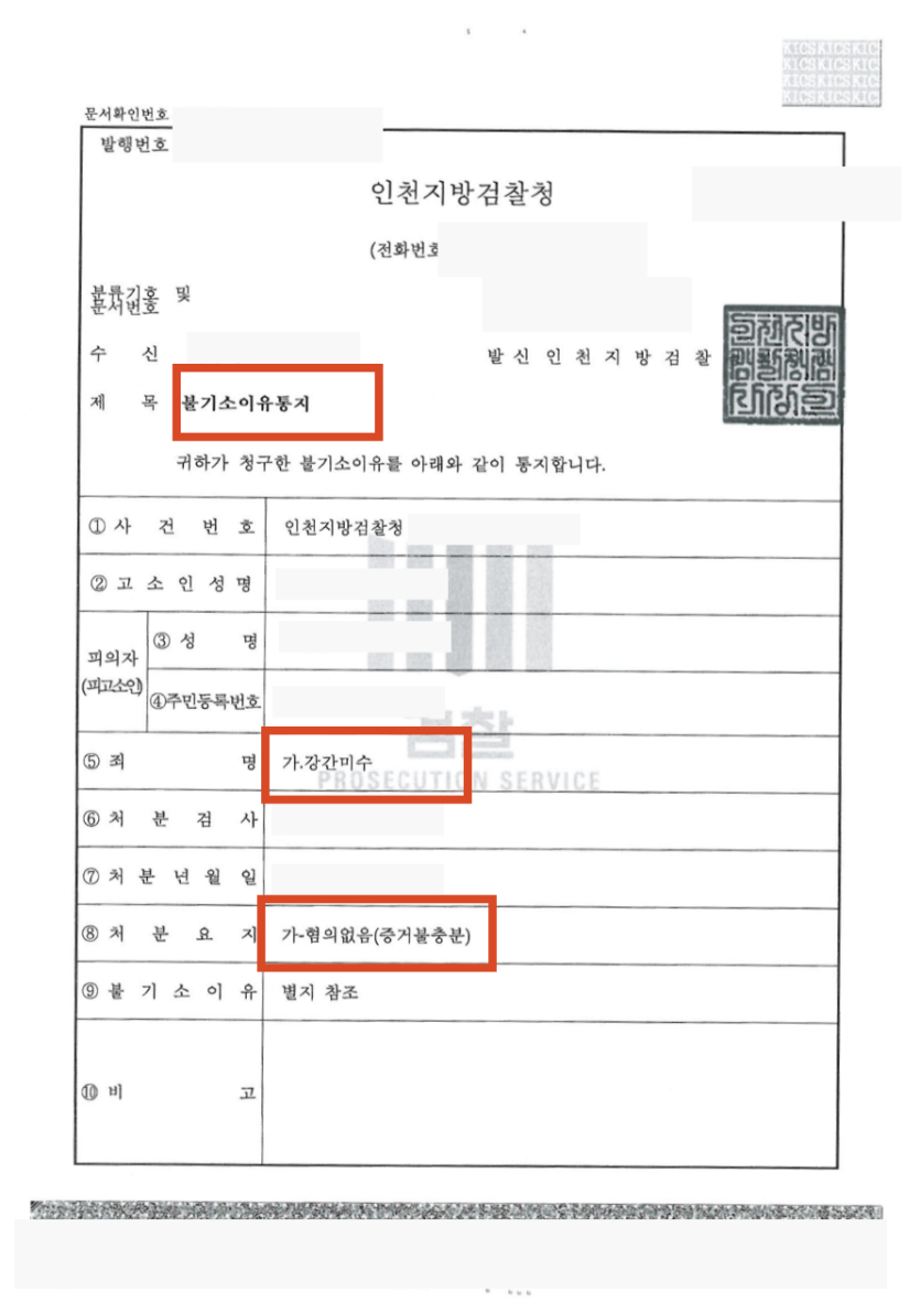 강간미수 혐의 증거 불충분 불기소 결정 사례