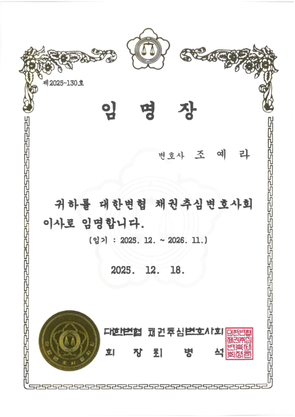 법무법인 우경의 조예라 변호사는 대한변호사협회 채권추심변호사회 이사로 임명되었습니다.