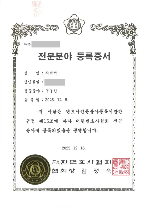 대한변호사협회 부동산 전문 변호사 등록